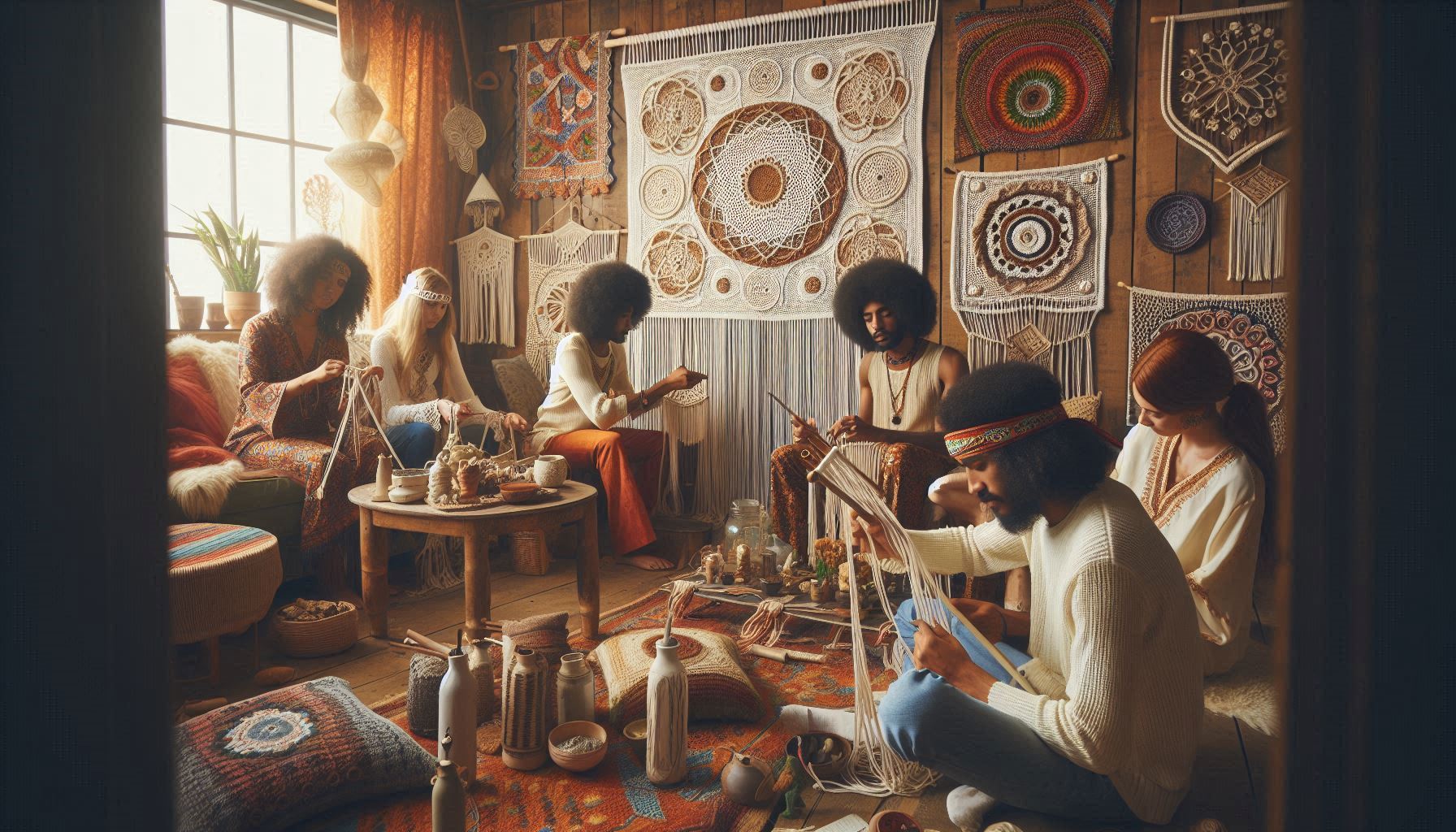 Il macramè ha vissuto una rinascita significativa negli anni ’60 e ’70, diventando un simbolo del movimento hippy e bohemien. Durante questo periodo, veniva utilizzato per creare una vasta gamma di oggetti, dai vestiti ai gioielli, fino agli arazzi e alle decorazioni murali. Questo ritorno era caratterizzato dall’uso di filati naturali come il cotone, la canapa e la juta, che si adattavano perfettamente allo stile di vita naturale e sostenibile promosso dal movimento hippy.