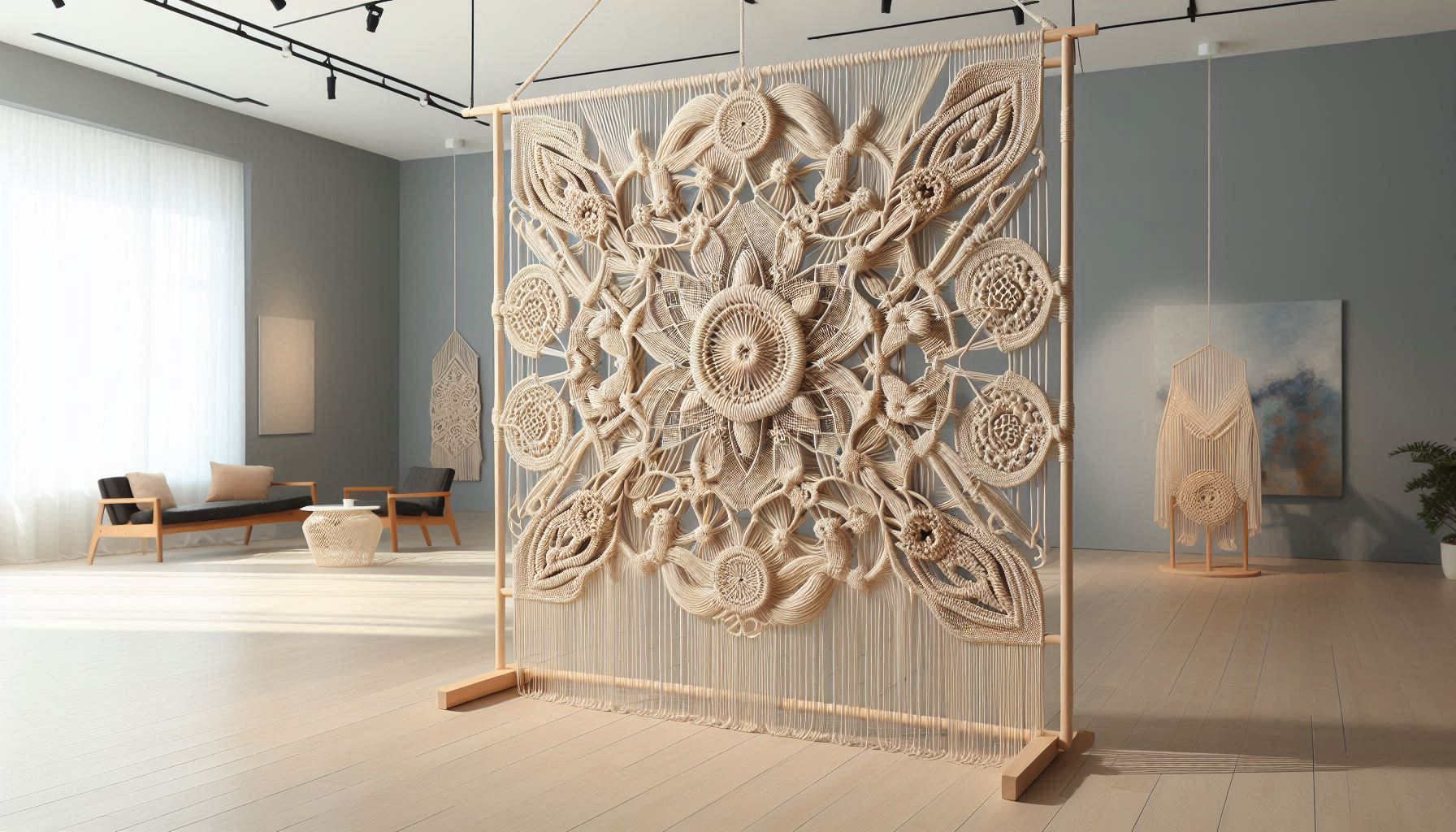 1. Arazzi Murali: Crea un arazzo usando una base di uncinetto su cui aggiungere nodi di macramè per un effetto tridimensionale.