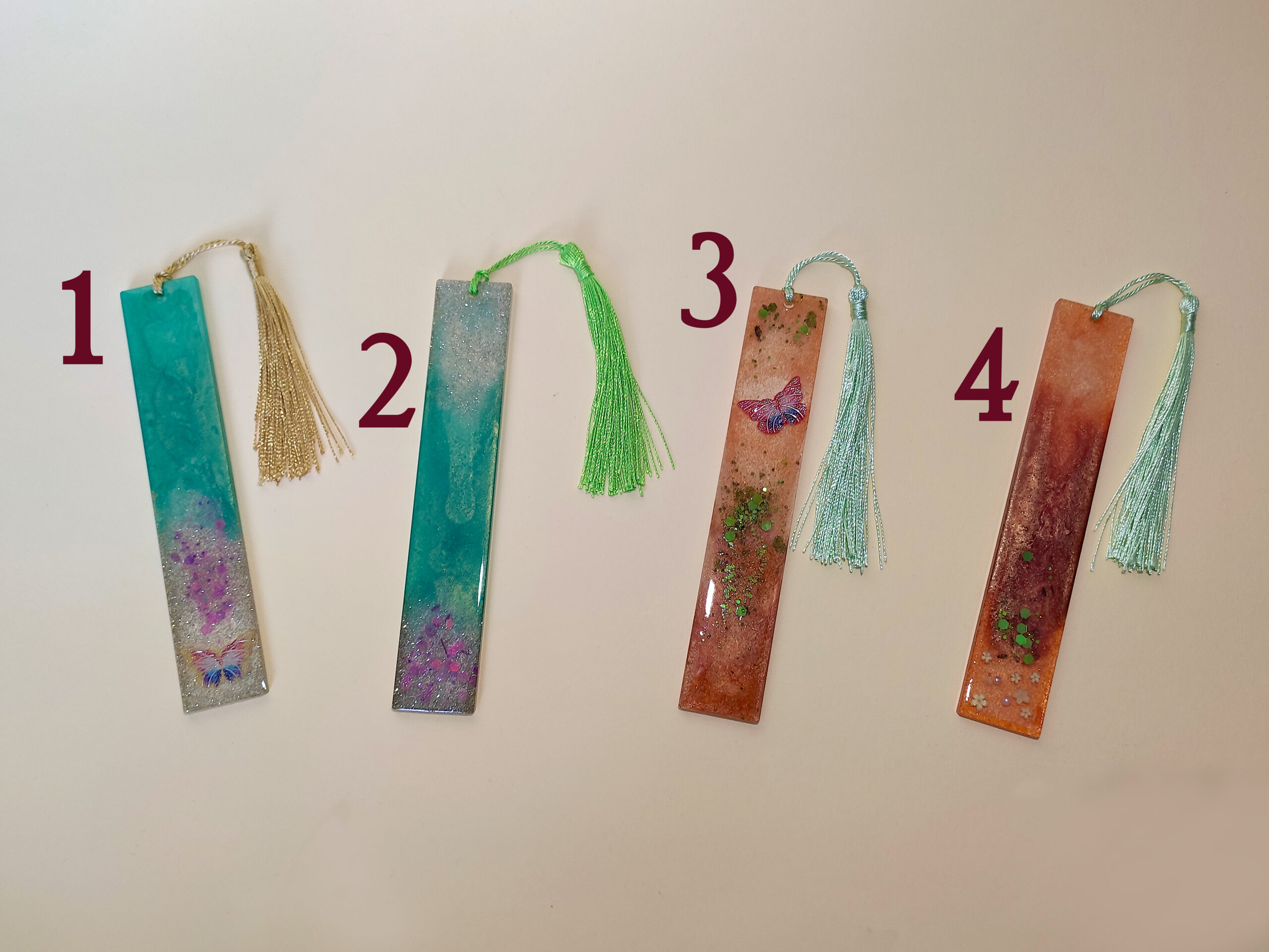 Immergiti nella bellezza degli Alba Oceanica, Segnalibri Fatti a Mano in Resina, dove la creatività e l’artigianalità si fondono per creare un’esperienza unica. Ogni segnalibro è un pezzo unico, realizzato a mano con cura e attenzione ai dettagli. I toni dell’azzurro e del blu cielo si mescolano con scintillanti glitter per catturare l’essenza stessa del mare in ogni movimento della resina. Mentre passi le pagine del tuo libro, goditi il piacere di sentire la morbida nappa che penzola delicatamente, pronta a portarti alla tua pagina successiva. E non dimenticare i piccoli dettagli: il segnalibro 1 e 3 con la sua elegante farfalla decorativa, e il segnalibro 3 e 4 con un tocco di vibrante arancione e verde che cattura la luce in un gioco di colori mozzafiato. Con gli Alba Oceanica, ogni momento di lettura diventa un’esperienza sensoriale che ti trasporta direttamente nelle profondità del mare e oltre.