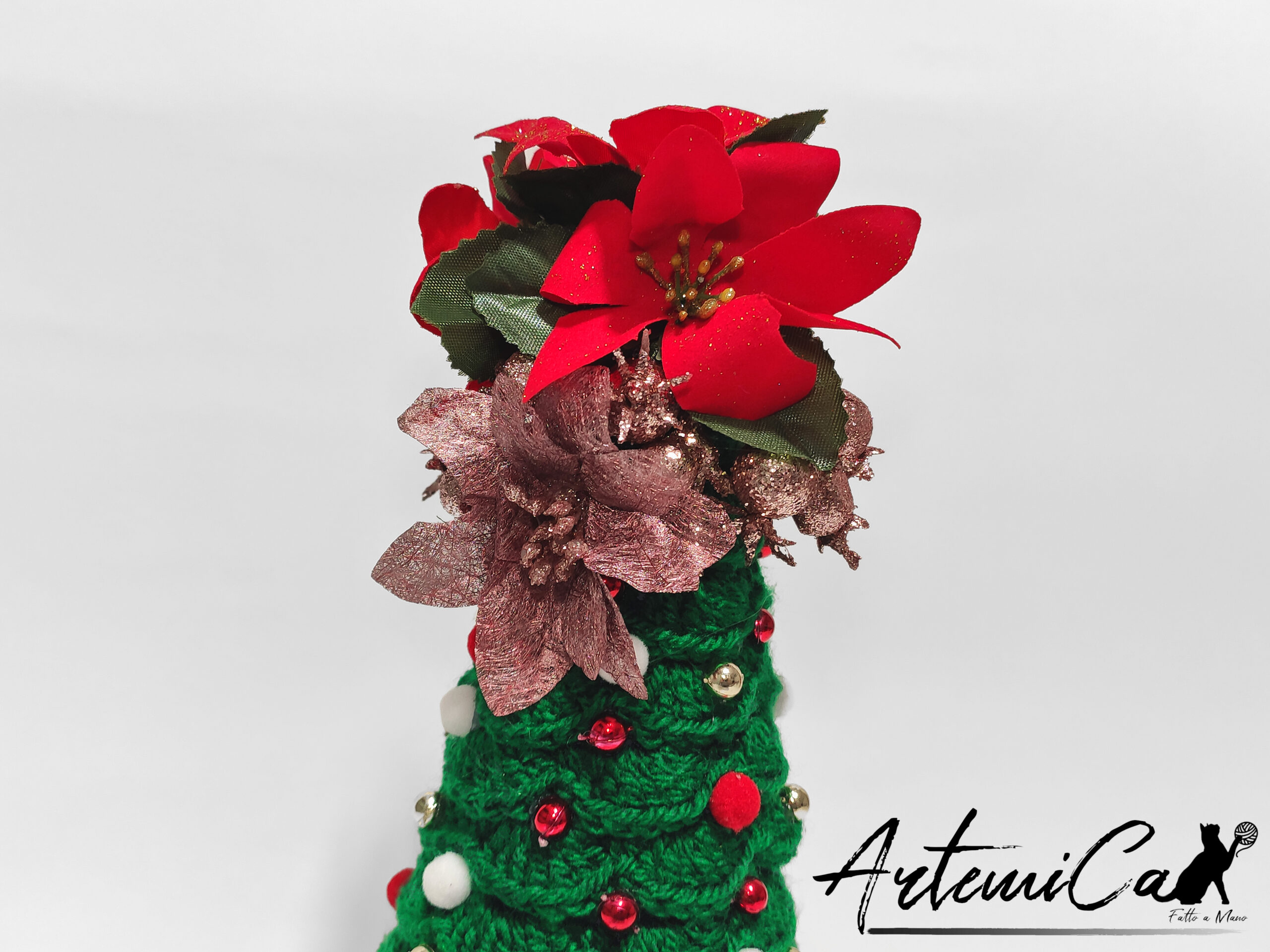 Le decorazioni sono il vero punto di forza: perline colorate luminose, foglie dorate scintillanti, stelle di Natale rosse eleganti e persino simpatici cappellini di Natale. Ogni dettaglio è pensato per catturare lo sguardo e arricchire l’ambiente con quel pizzico di magia che solo le creazioni fatte a mano possono offrire. Disponibile in tre dimensioni – 20 cm, 25 cm e 30 cm – si adatta a qualsiasi spazio, aggiungendo un tocco di fascino ovunque venga posizionato.