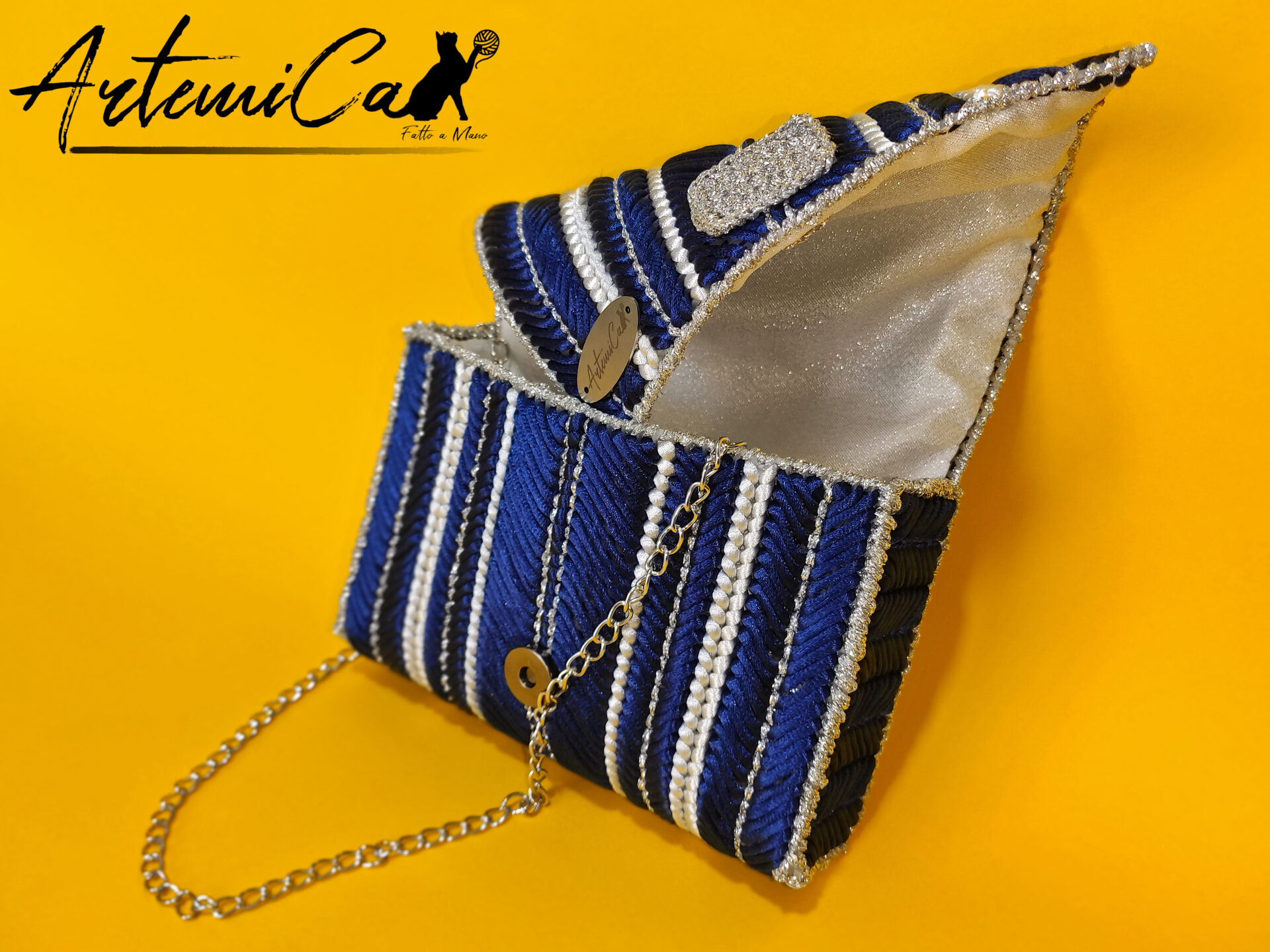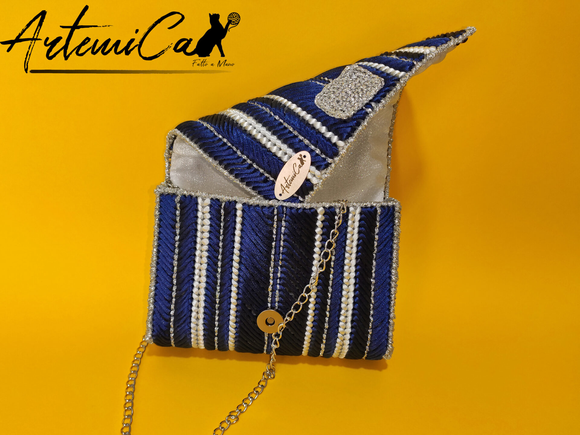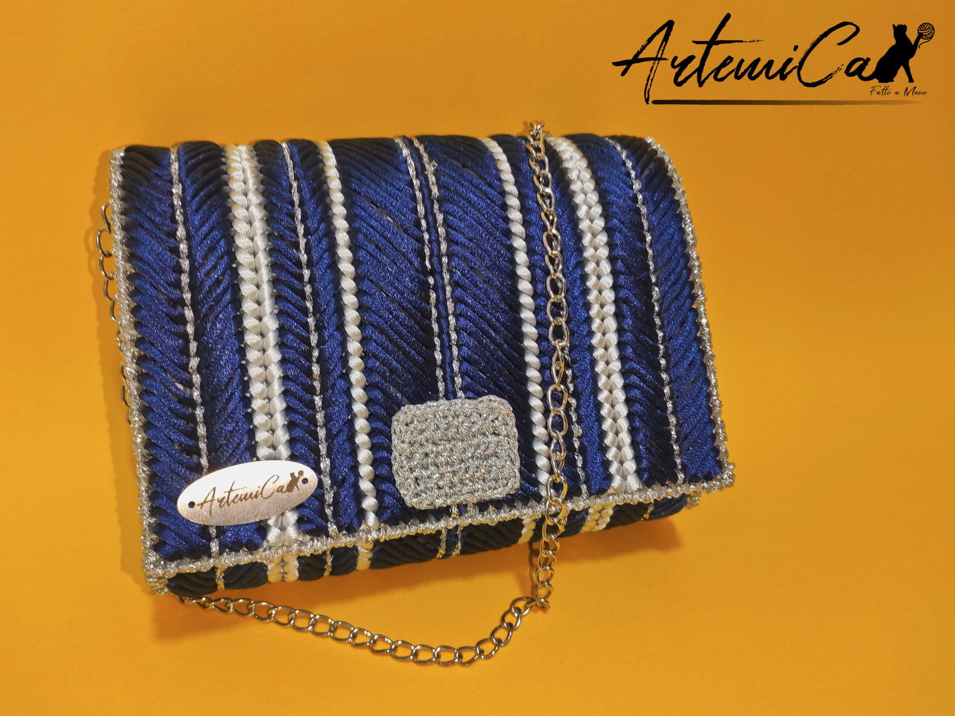 La catenina in argento, un elemento di design distintivo, aggiunge un tocco di dinamismo al prodotto. Non solo è funzionale, ma aggiunge anche un elemento di gioco e movimento alla Pochette, evidenziando il suo carattere unico. Questa mini Pochette è l’accessorio perfetto per elevare il tuo stile quotidiano o per aggiungere un tocco speciale a un’occasione formale. Indossa la nostra “Cielo Notturno: Pochette Stellata dei Fili Luminosi” con fiducia e sottolinea la tua personalità distintiva con un tocco di classe artigianale.