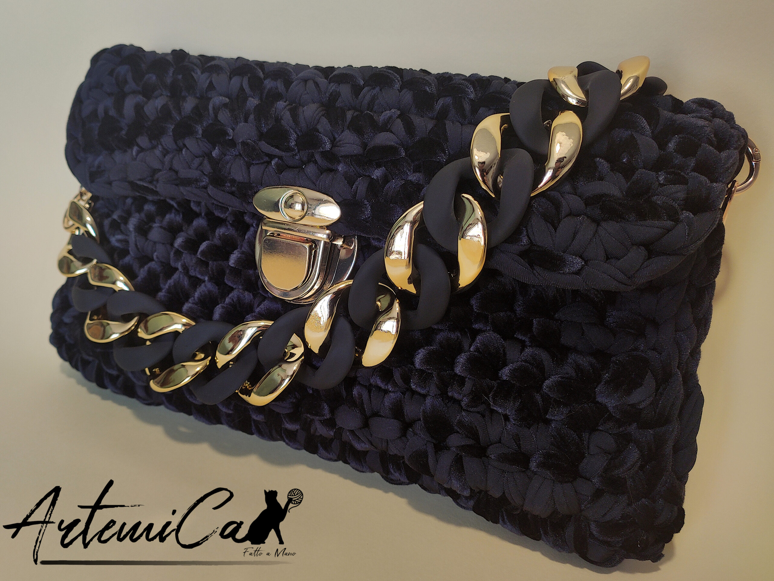 Recensisci per primo “Clutch Velluto Noir et Or: Borsa Artigianale in Velluto Nero con Catena Dorata”