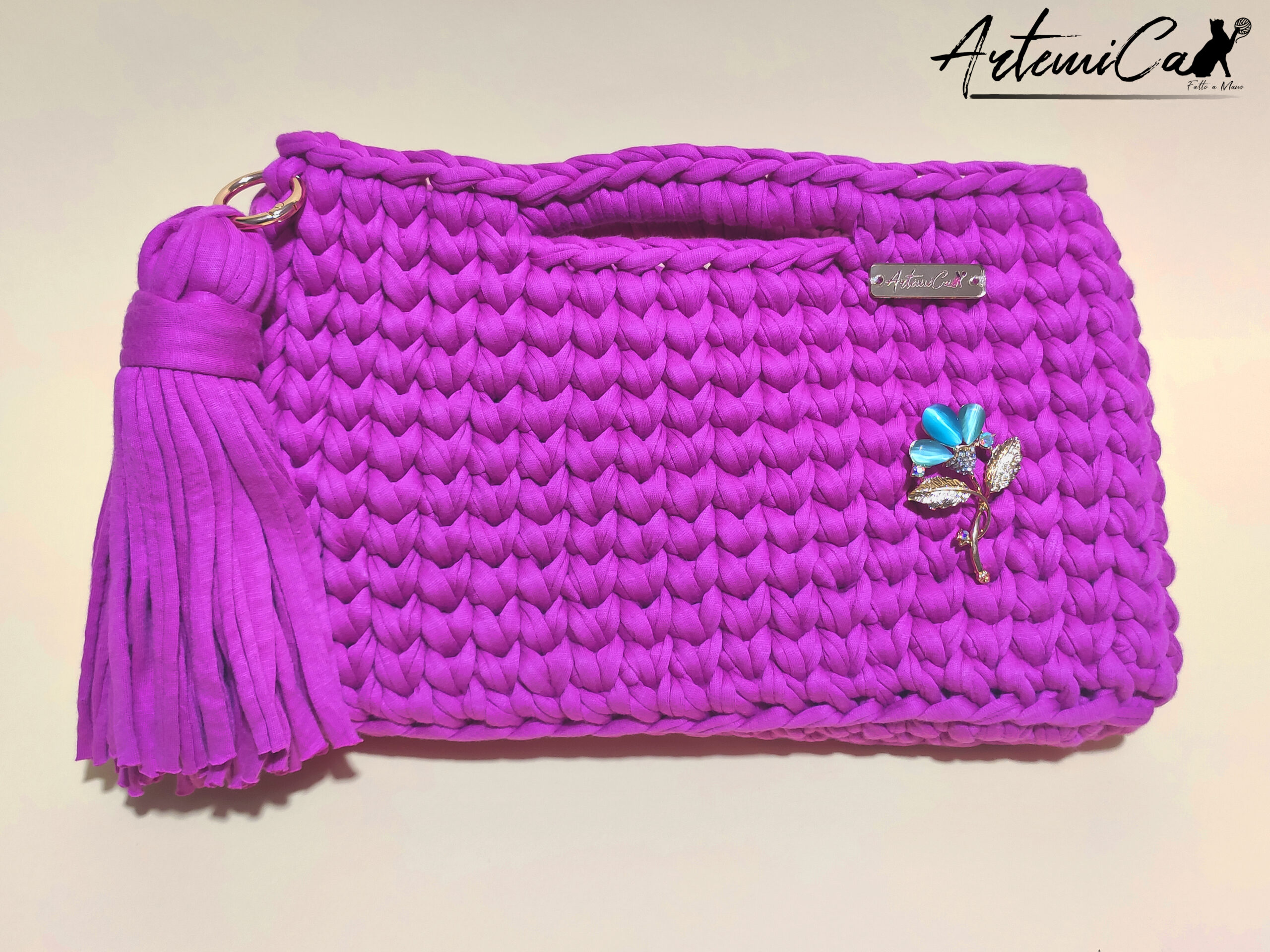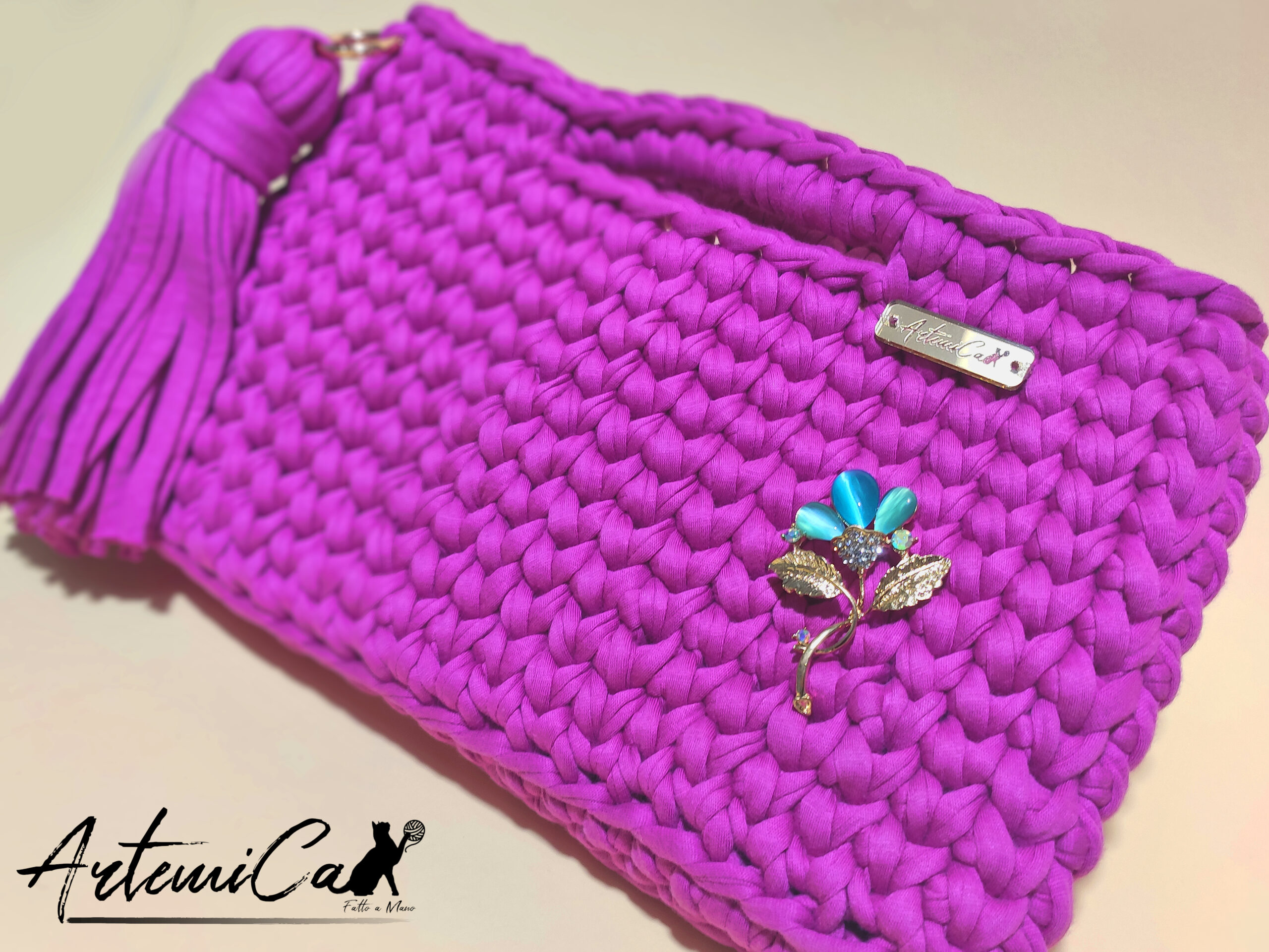 Color Pop: Clutch Bag Fatta a Mano all’Uncinetto in Fettuccia Fucsia