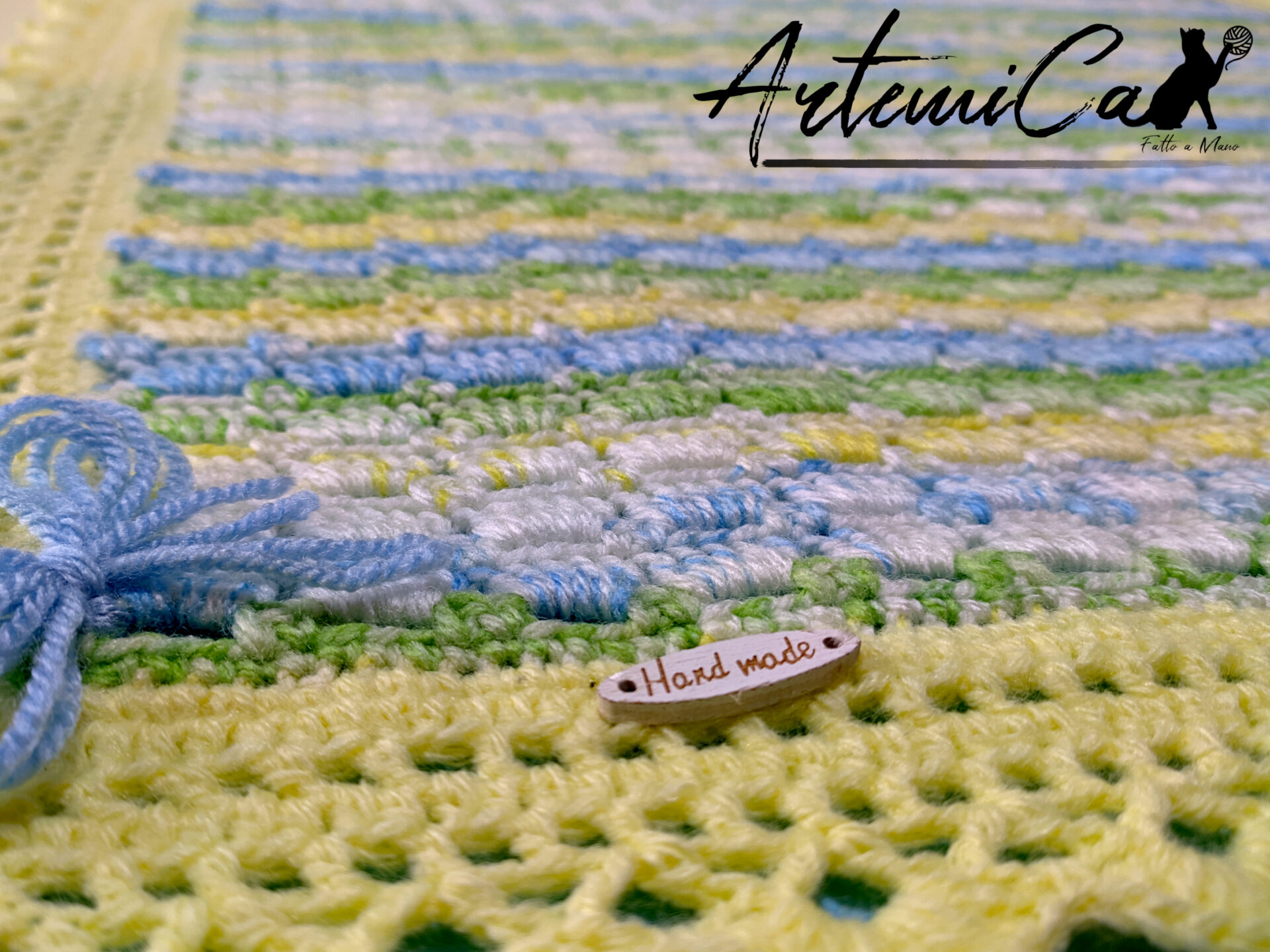 Se stai cercando un regalo originale e caldo per il tuo bambino o da regalare per un occasione speciale (nascita,battesimo), questa copertina per carrozzina è quello che fa per te. Realizzata interamente a mano con lana arcobaleno di alta qualità, questa copertina è morbida, soffice e colorata. La sua dimensione di 75x60cm (29.5×23.6 inches) la rende perfetta per avvolgere il tuo piccolo con dolcezza e proteggerlo dal freddo. Il motivo a uncinetto è semplice ma elegante, e si adatta a qualsiasi stile di carrozzina. Questa copertina è un prodotto unico e irripetibile, frutto della mia passione e della mia creatività. Non lasciartela scappare, ordina ora la tua copertina per carrozzina in lana arcobaleno!