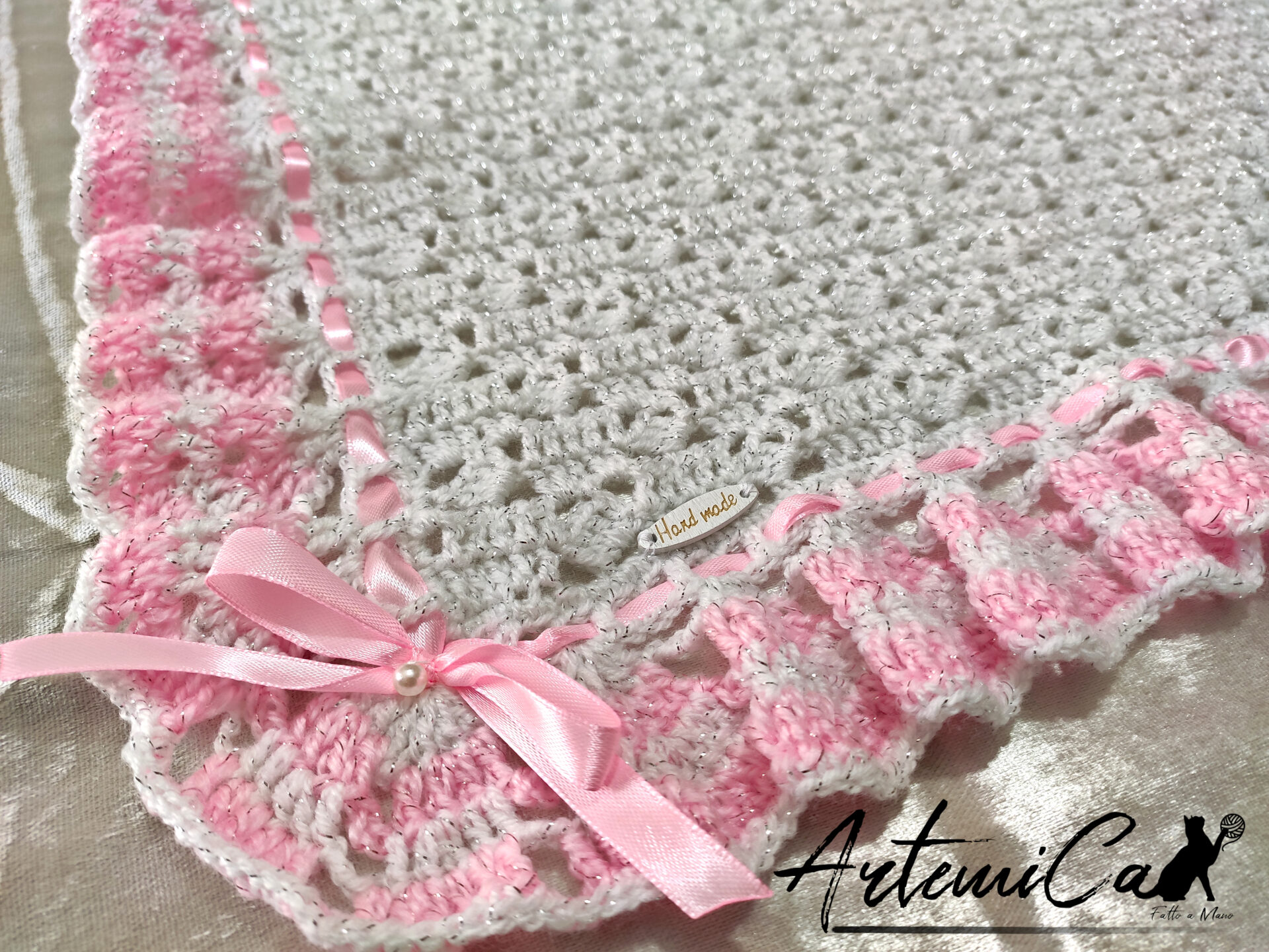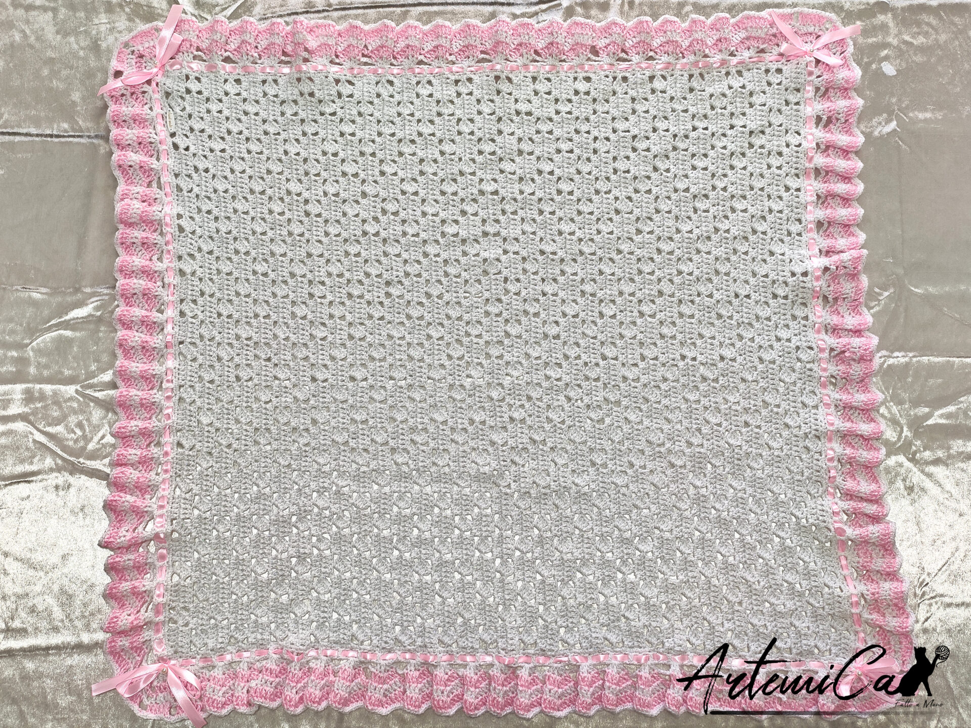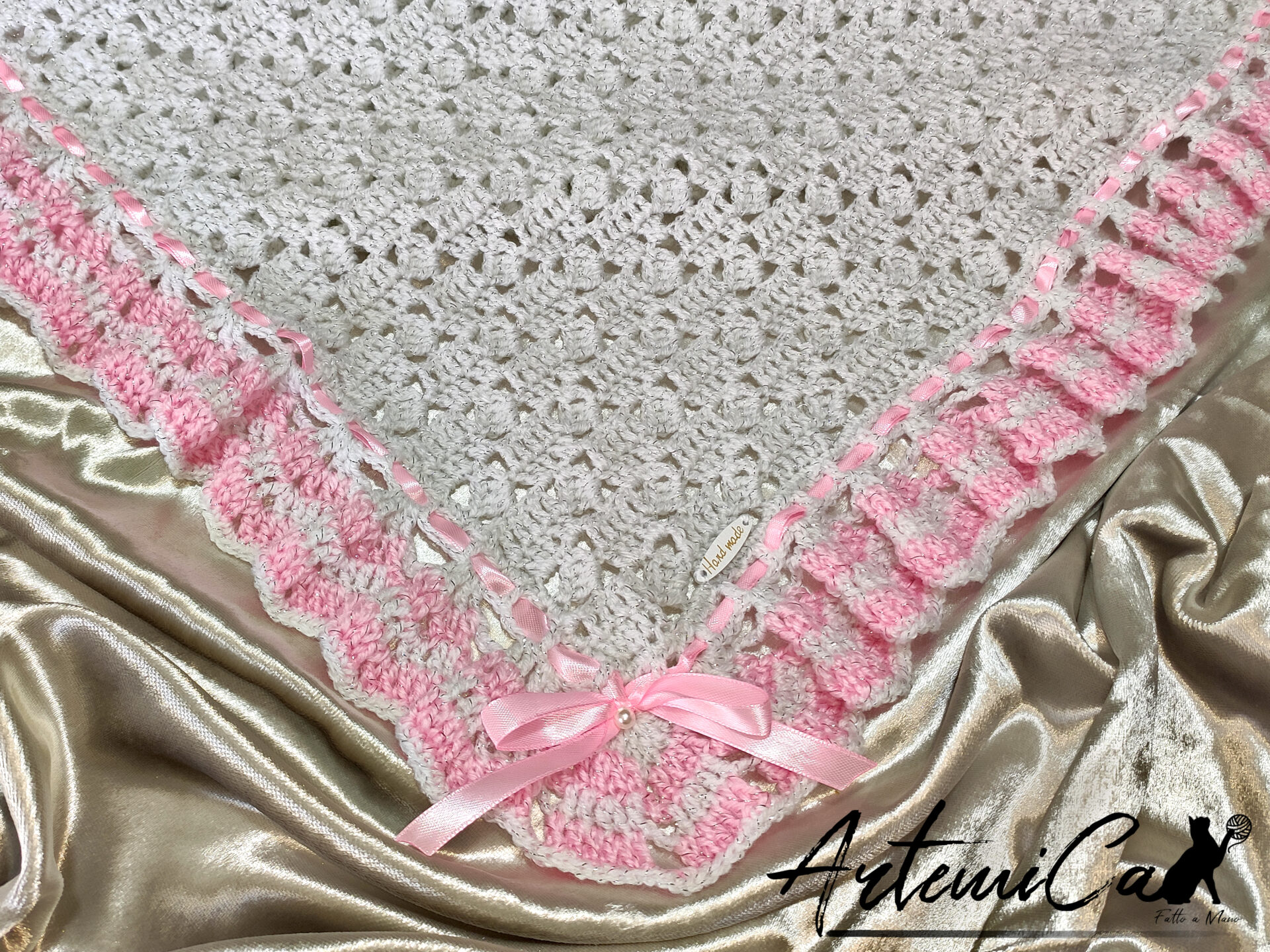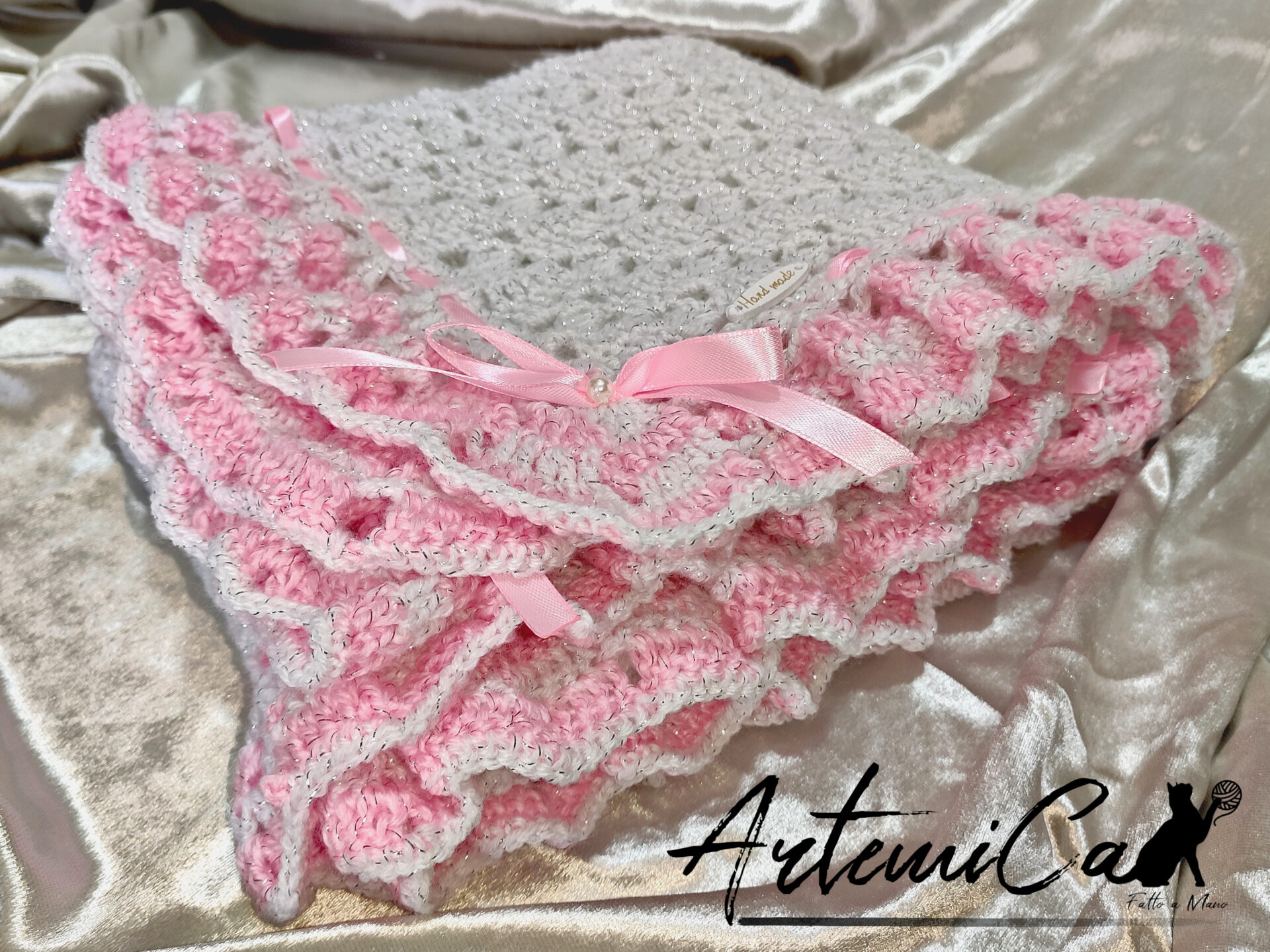 Ecco la copertina per carrozzina che farĆ  girare la testa a tutti i genitori e farĆ  sorridere la tua bambina! Questa meraviglia artigianale ĆØ stata realizzata con amore e cura all’uncinetto, rendendola un pezzo unico nel suo genere.