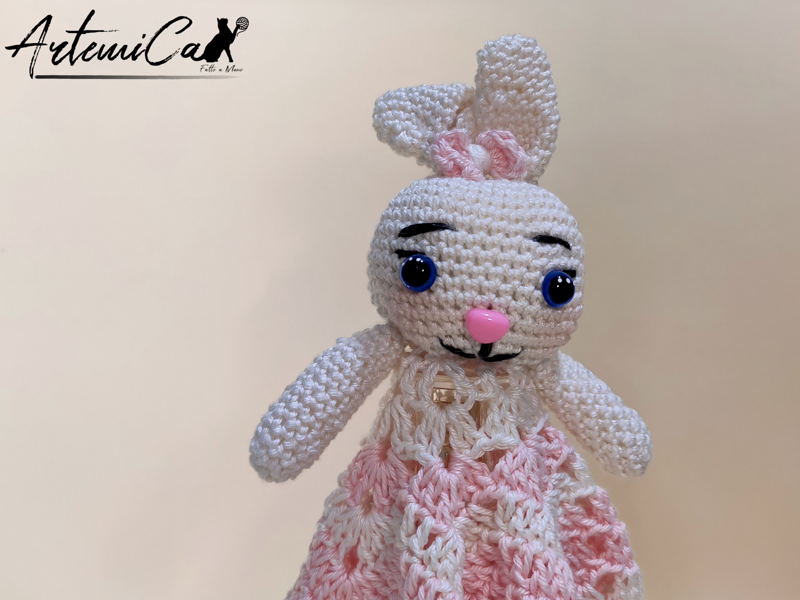 Il design del Dudu รจ pensato per essere morbido, maneggevole e irresistibile. La testolina tonda รจ decorata con occhietti e bocca,ย  mentre il nasino rosa aggiunge un tocco giocoso e vivace. Le orecchie lunghe e morbide sono perfette per essere afferrate e accarezzate dai piccoli, regalando momenti di conforto e divertimento. Le braccine laterali, cucite con precisione, completano il design, rendendo il Dudu ancora piรน accattivante e unico.