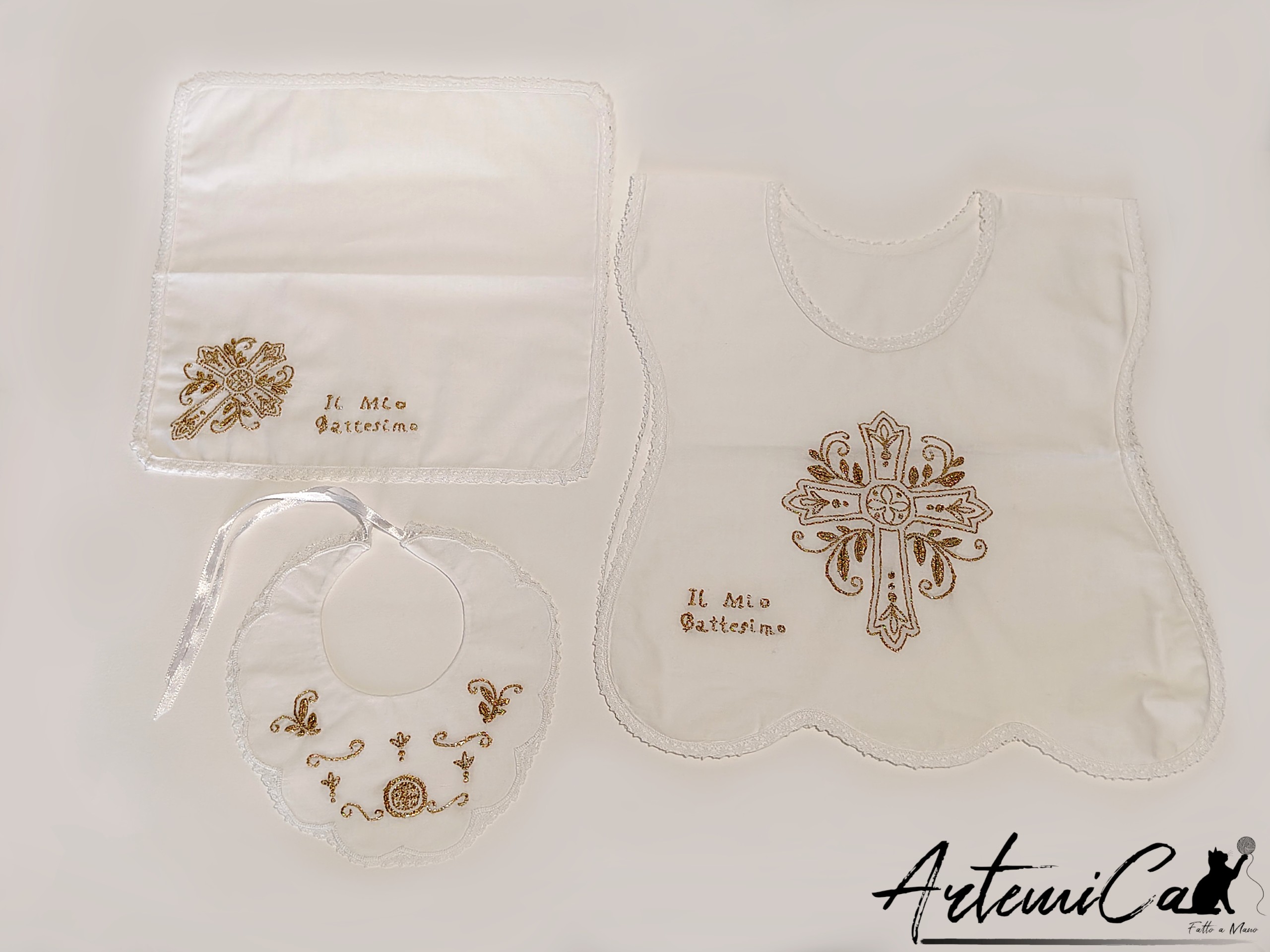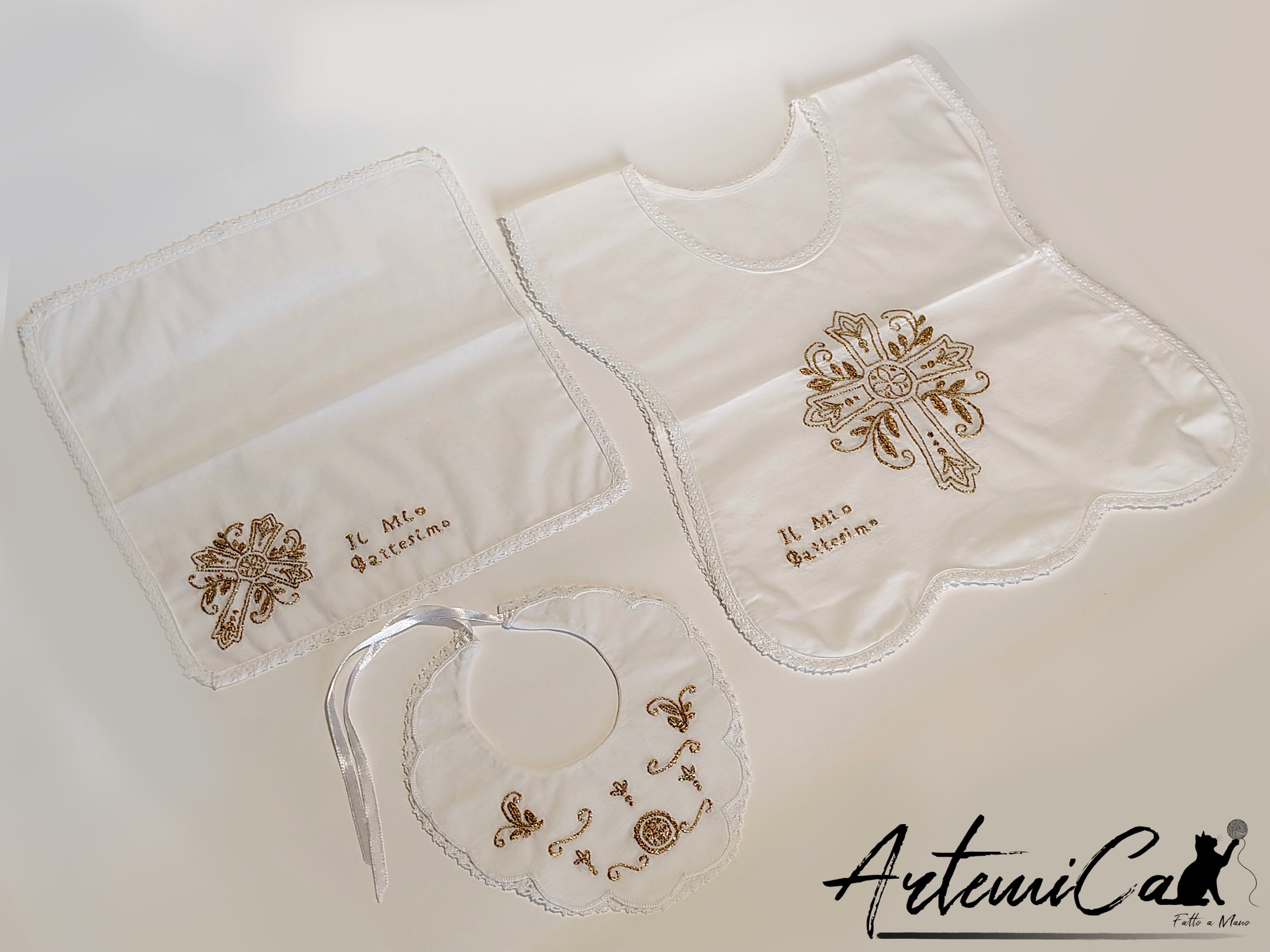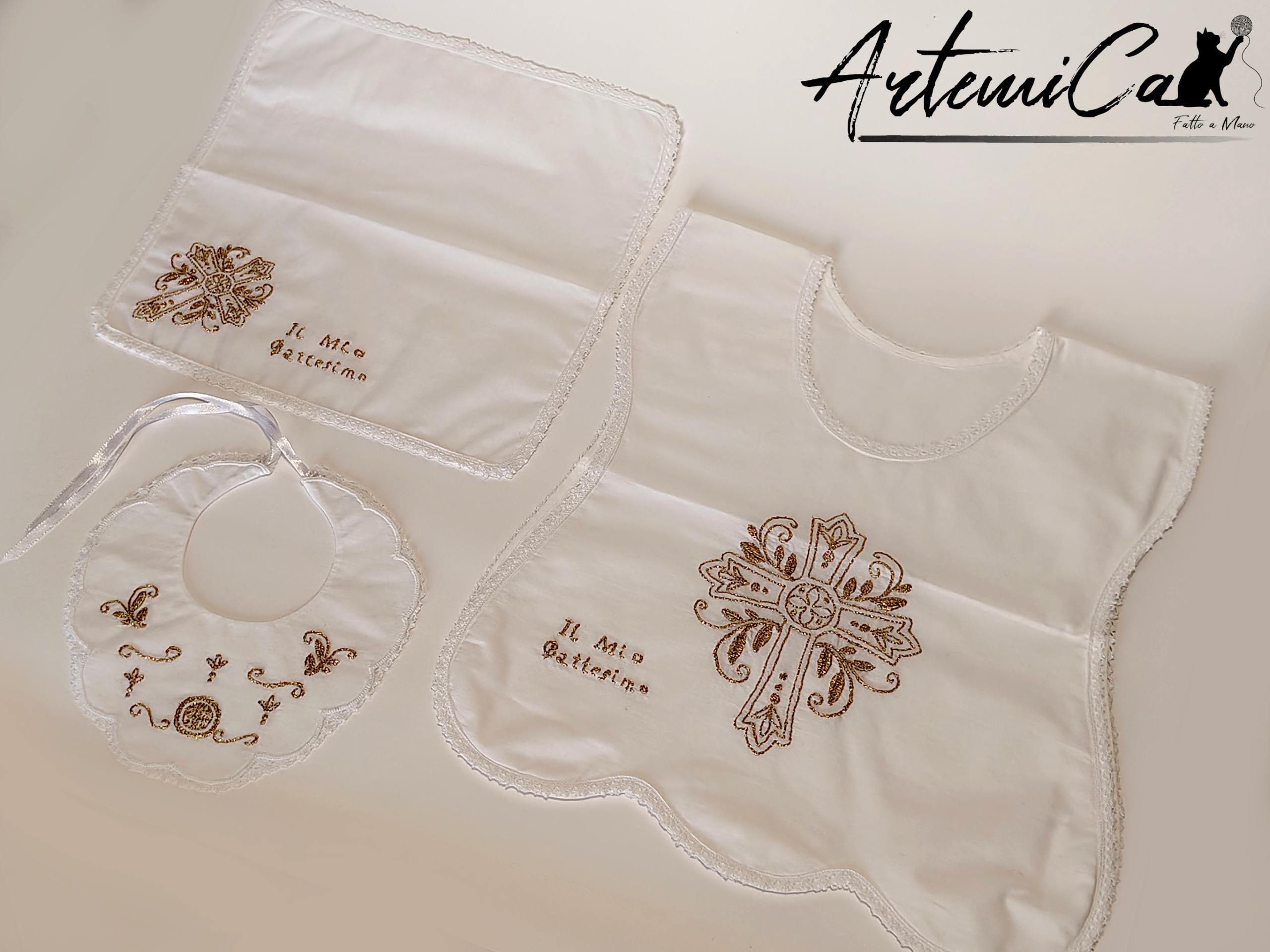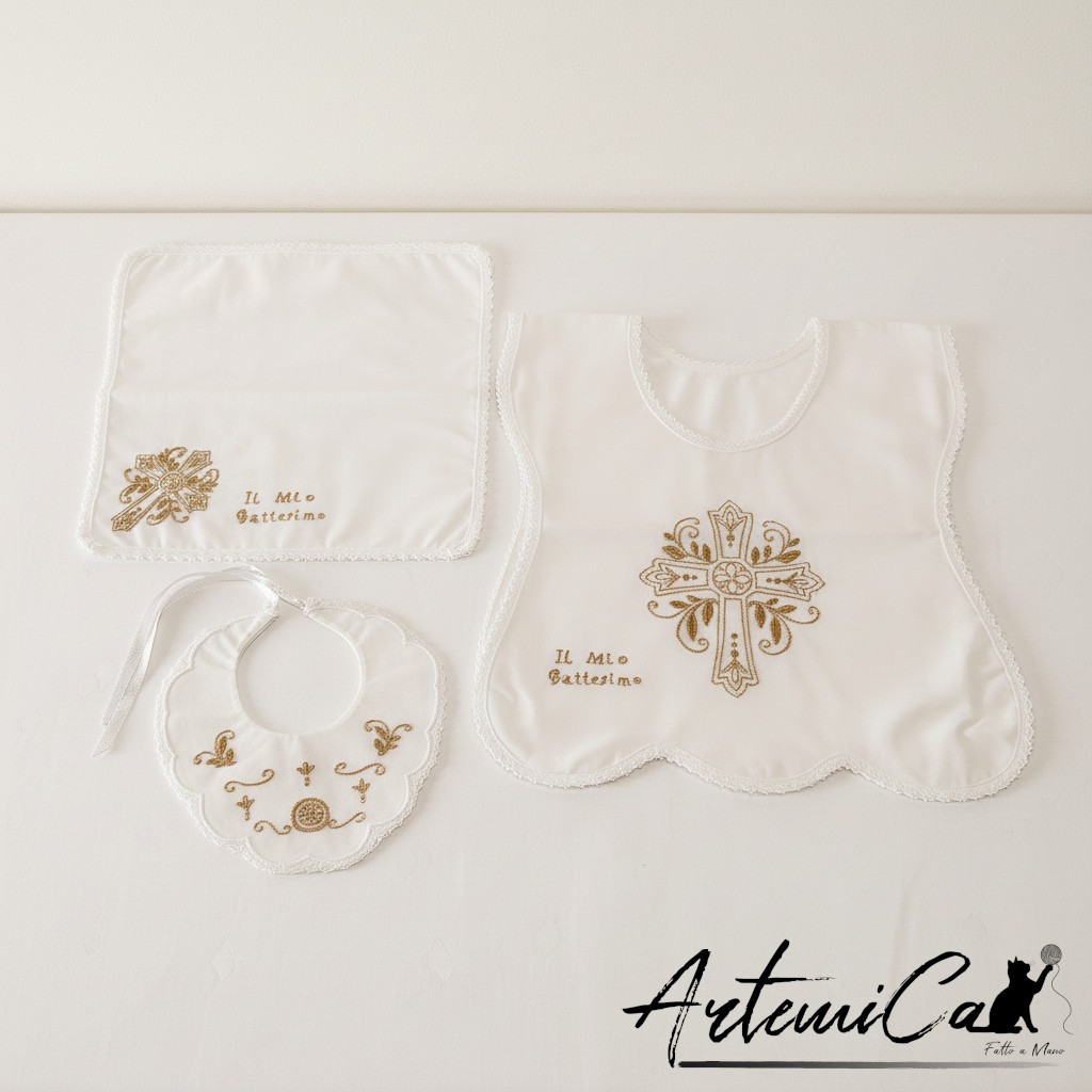 Grazia Divina – Set Battesimale Ricamato a Mano con Filo Dorato