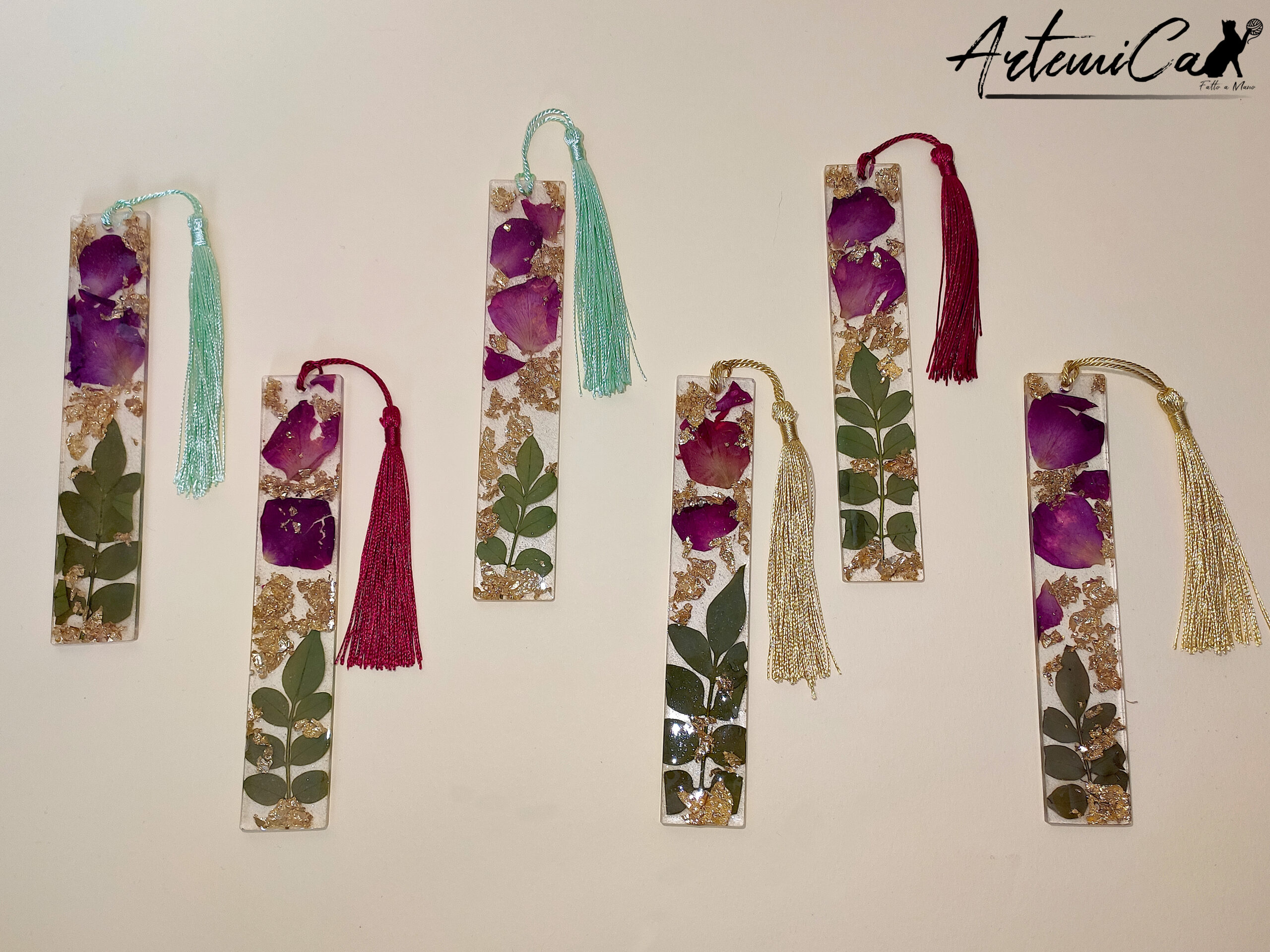 Immagina di aprire un libro e di essere accolti da un giardino segreto di rose. Il nostro “Segnalibro Artigianale in Resina con Petali di Rosa” è una vera e propria poesia tangibile. Ogni esemplare è unico, fatto a mano con cura e passione. La resina trasparente, come uno specchio d’acqua cristallina, racchiude con maestria ramoscelli di gelsomino siciliano e petali di rosa rossa, catturandone la bellezza eterea per l’eternità. Ma c’è di più: l’aggiunta della foglia oro dona un tocco di luce magica, facendo brillare ogni dettaglio al passaggio della luce.