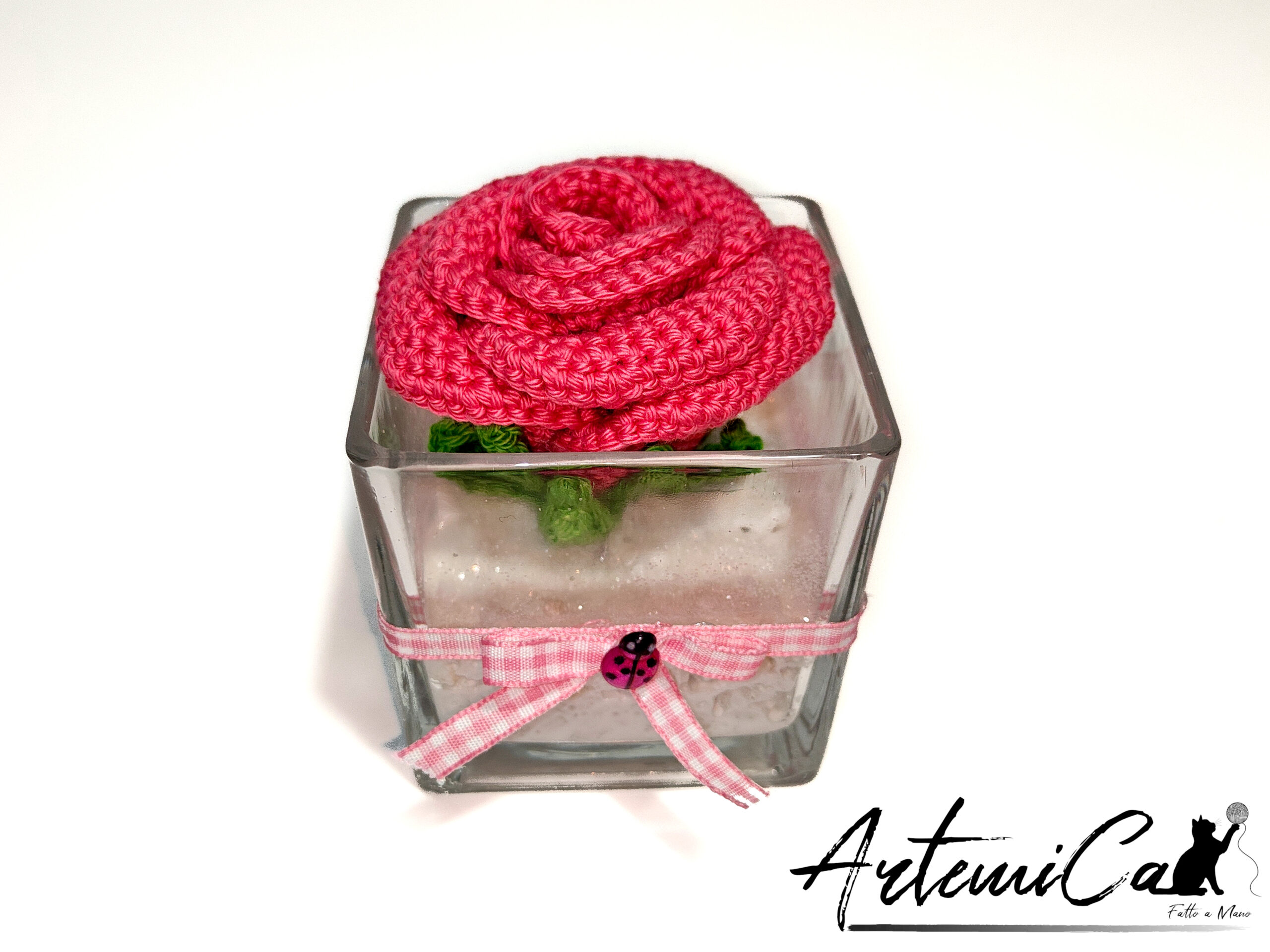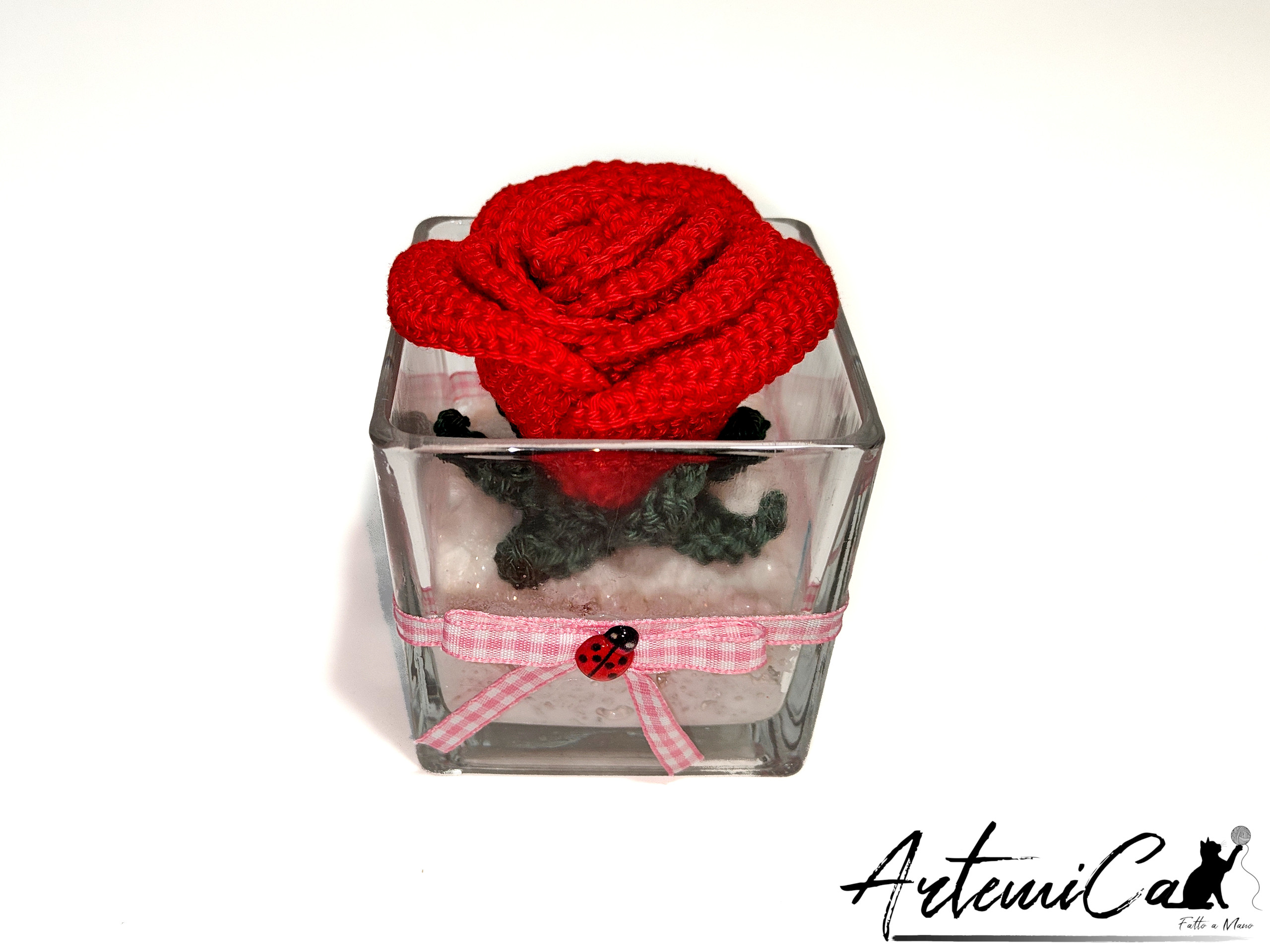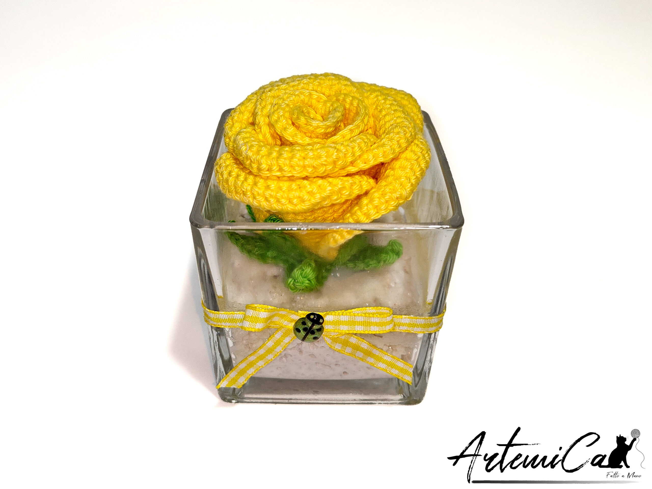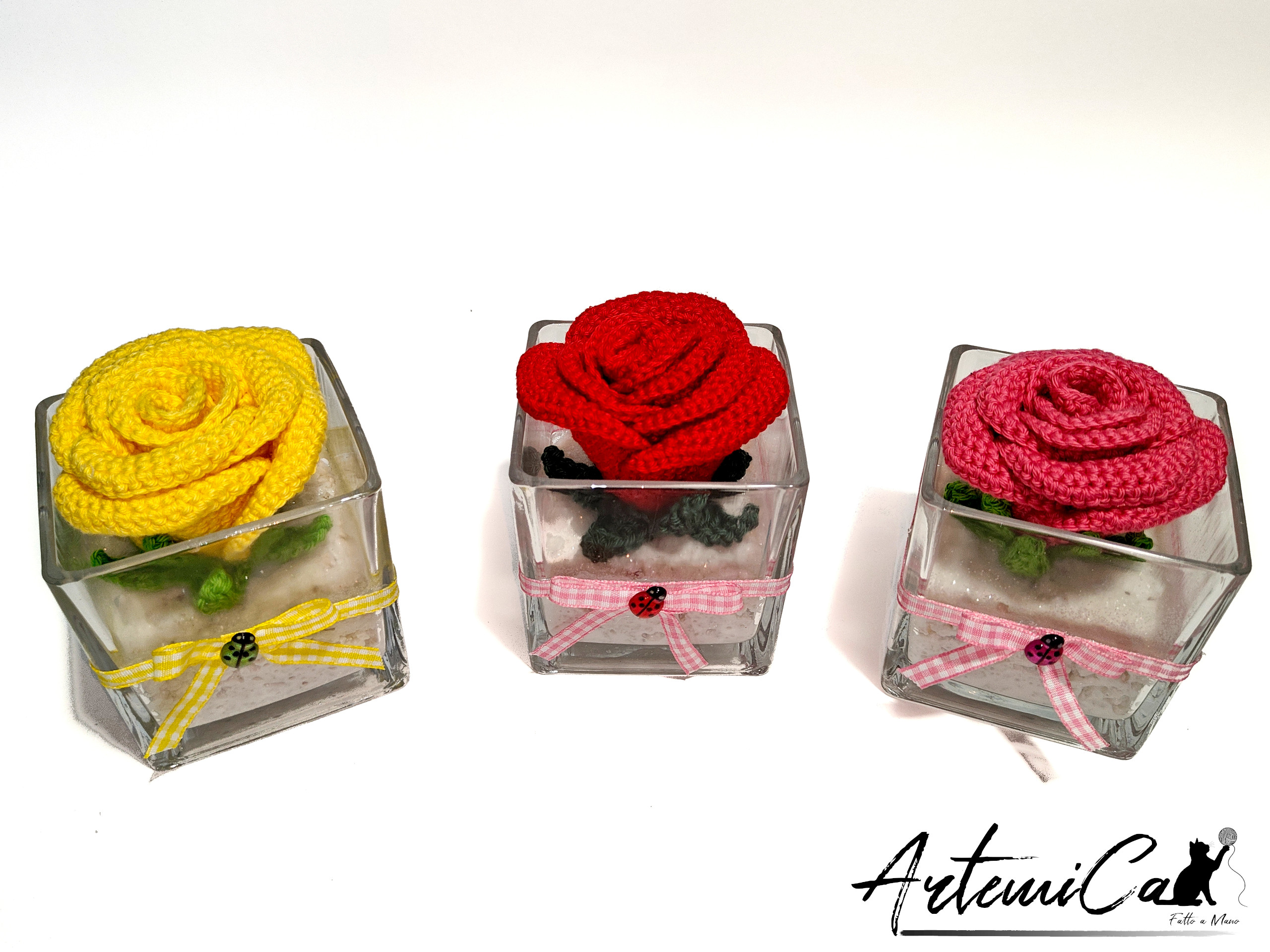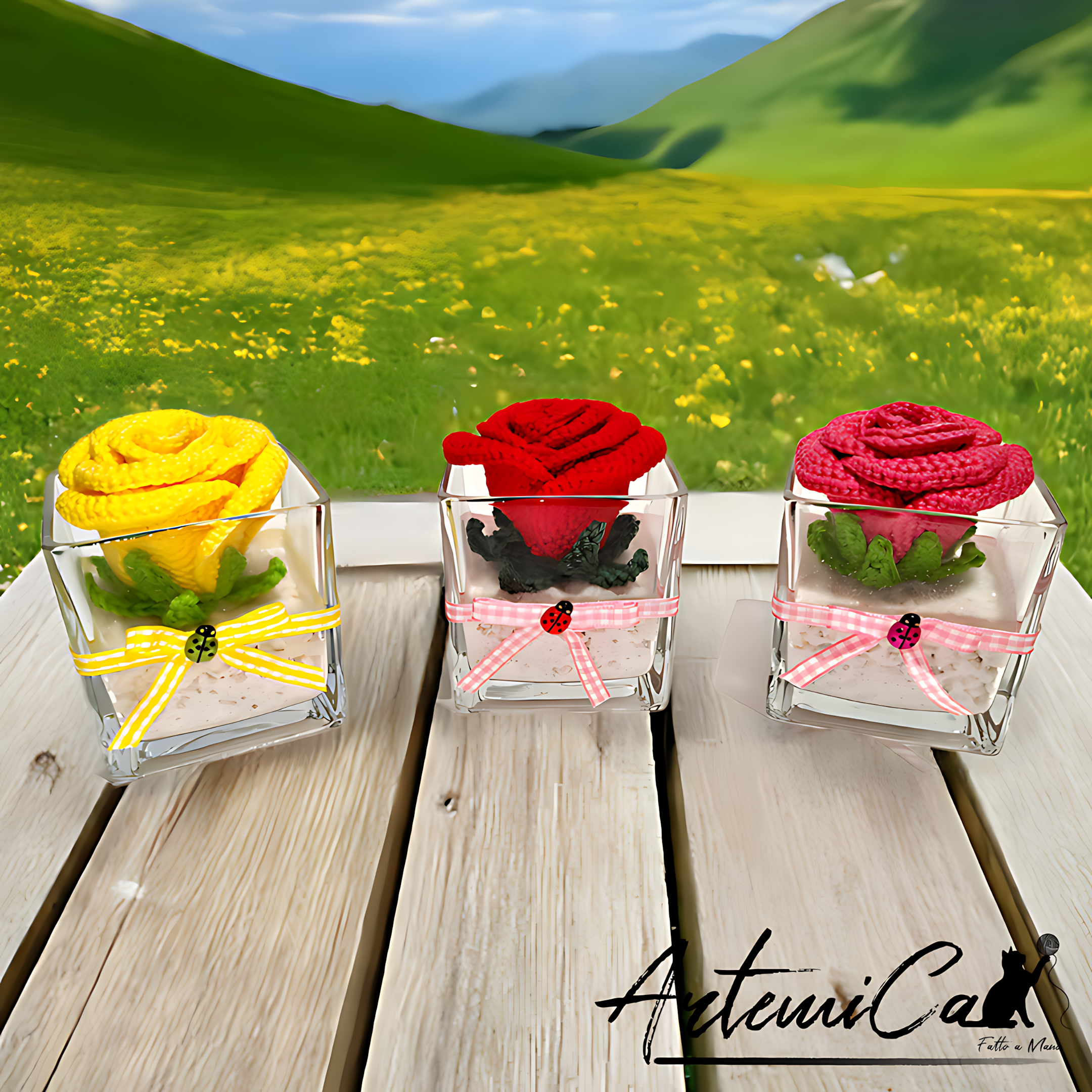 Ogni rosa รจ realizzata a mano allโuncinetto con filato di cotone, un materiale naturale, resistente e piacevole al tatto, che dona al fiore una texture soffice ma ben definita. Tre le tonalitร disponibili: il giallo luminoso come un raggio di sole, il rosso intenso e avvolgente come un abbraccio caldo, e il rosa delicato, perfetto per chi ama i toni teneri e romantici. Le foglioline verdi, anchโesse in cotone, completano la composizione con grazia.